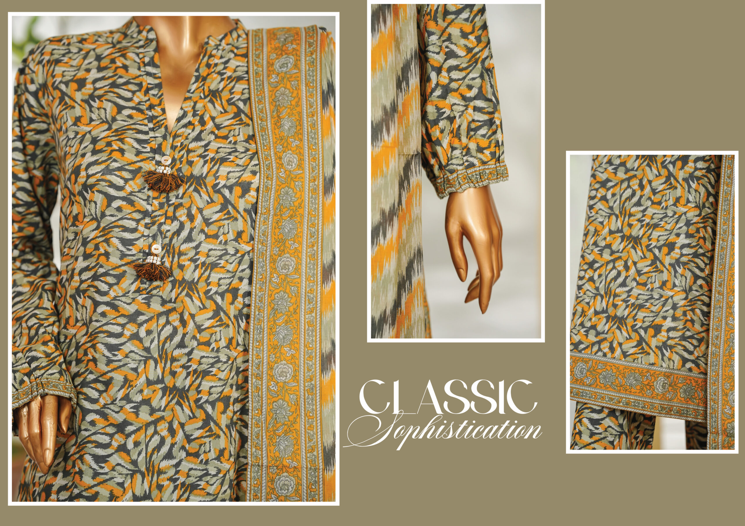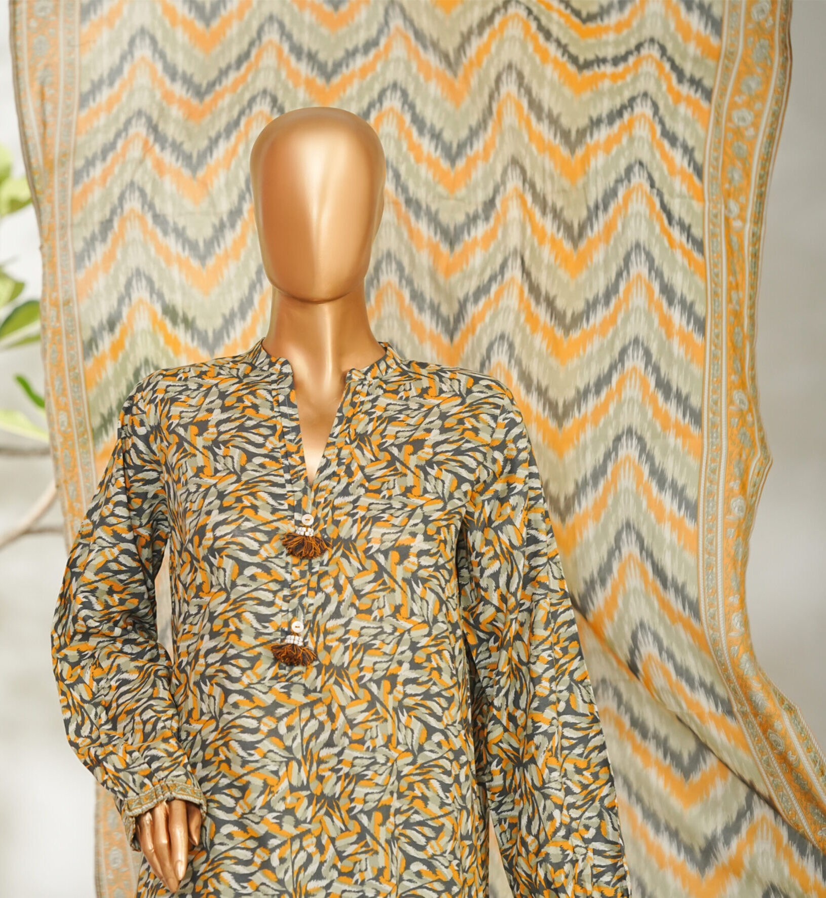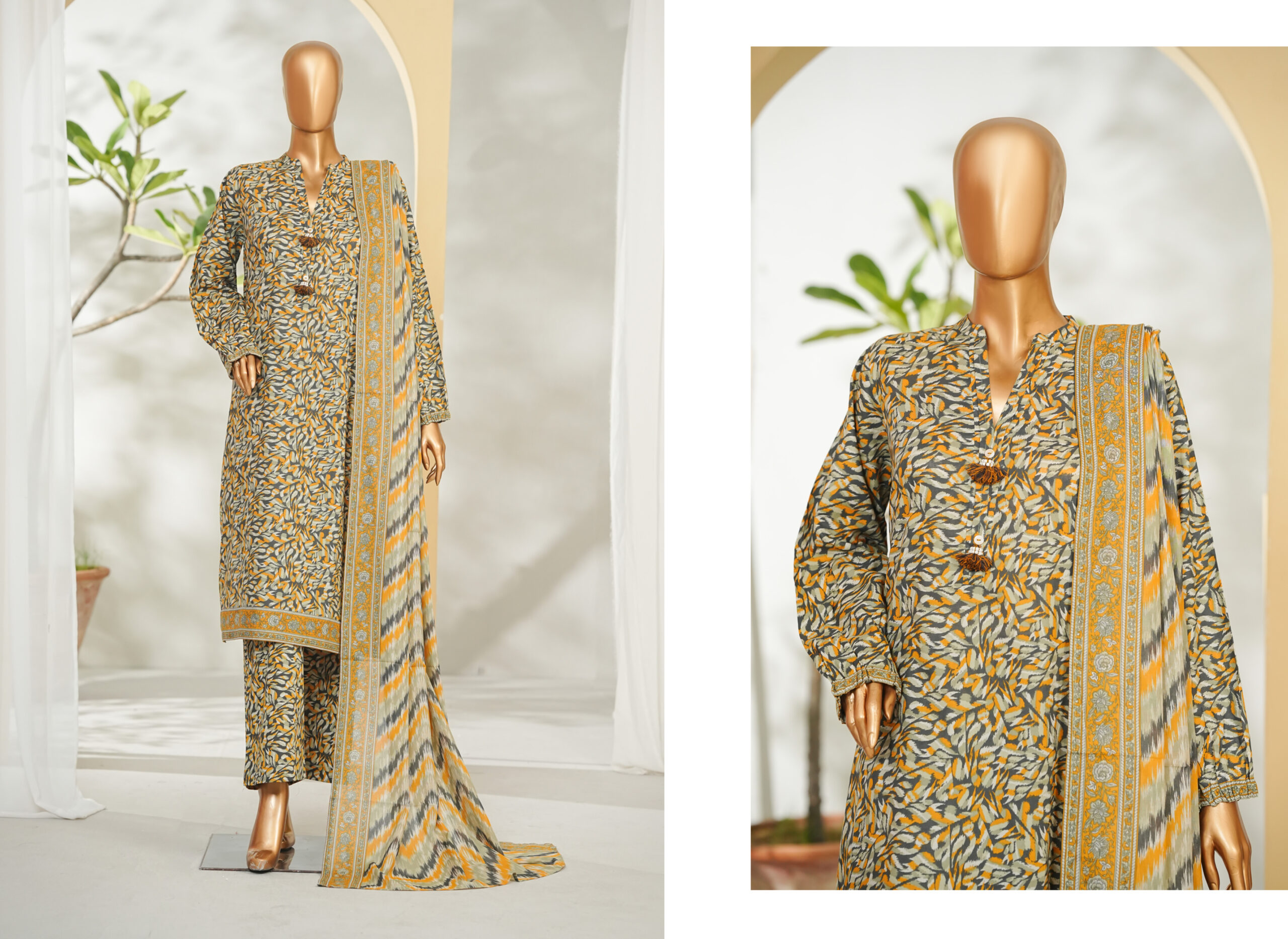 The beautifully designed printed shirt features vibrant patterns and fine detailing, paired with a matching printed or plain trouser for a graceful look. The coordinating printed dupatta adds a refreshing touch, completing the ensemble with effortless charm.